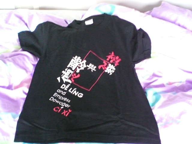 其实还有一件外套,呵呵。演出的剧目名字是《德龄与慈禧》,已经印在衣服上了,呵呵。演出时候,我们这些幕后staff也要忙起来了,给我的安排是负责入场的检票以及万一有人当场买票的事情,总的来说就是管票子和钱的,额,只要关于到钱,我就觉得压力好大。。。第一次做这样的事情,要好好做啊。