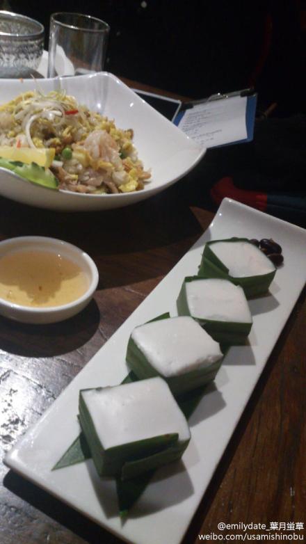 有一张是椰汁西米糕,第一口咬下去竟然是咸的,但是吃到底部的西米糕后,觉得很好吃。泰国菜果然是爱吃的人很爱吃,不习惯那味道的人还是不要勉强了。。。我觉得如果我去泰国旅游的话,估计不太能适应那边的菜,好吧,本来以后还打算去曼谷或者清迈旅游的,看来要重新慎重考虑下了。